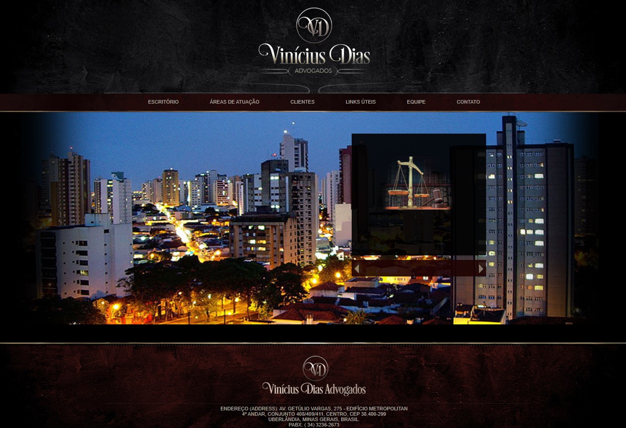 Criação do site institucional para Vinícius Dias Advogados Associados. Desenvolvido em Python com administrador de conteúdos. Layout exclusivo.