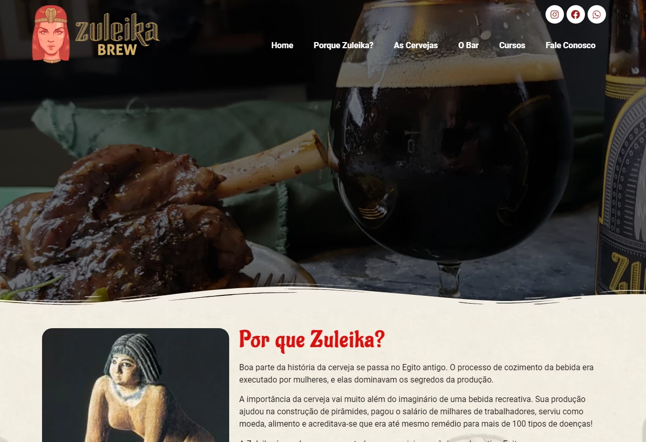 Criação do site da Cervejaria Zuleika, com estilos de cervejas e cardápio digital.